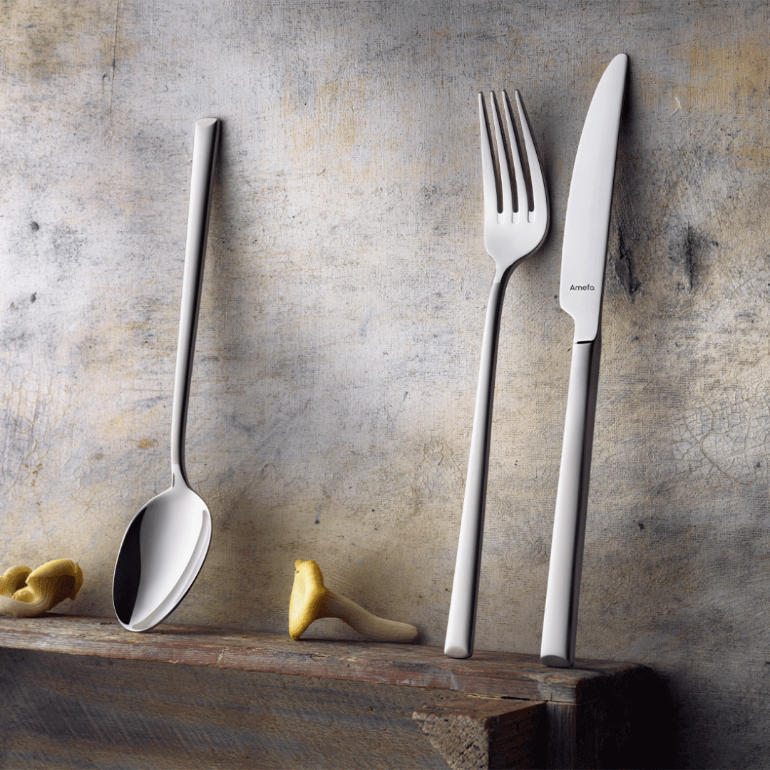 Metropole is a cutlery collection by Amefa that combines modern design with the highest quality craftsmanship. Elegant and durable, they are perfect for restaurants, hotels, and home interiors, highlighting the unique character of any table arrangement. With precise finishing and attention to detail, Metropole offers not only functionality but also timeless aesthetics.
