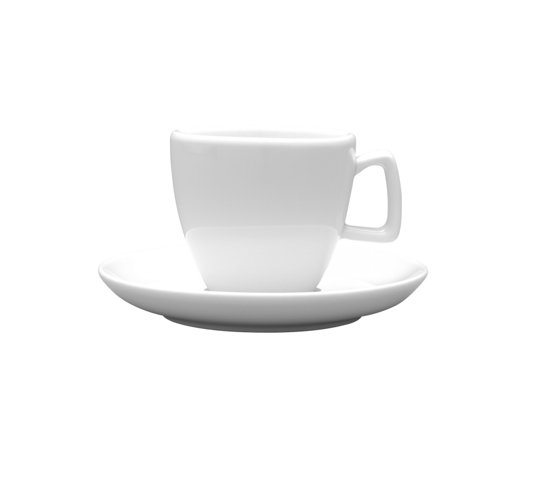 We present a white cup made of thick-walled porcelain, admired for its durability and elegance. Its unique, designer handle adds character while ensuring comfortable use. Available in two sizes, this cup combines refined style with functionality, perfectly complementing any interior.