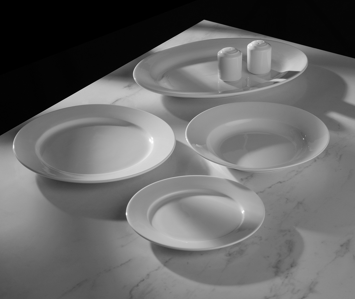 The range includes various models: flat plates, deep plates, high-rim plates, rimless plates, and serving platters, allowing for aesthetic and professional dish presentation. Their durability makes them perfect for intensive everyday use, while the universal design complements any table setting. With the option of personalization through logo, print, or graphic design, PURE plates become a carrier of brand identity and a tool for building a prestigious image of the venue.