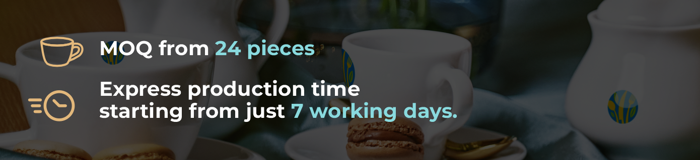 Personalized high-quality porcelain with a minimum order of just 24 pieces..With express production times starting from just 7 business days, your custom designs will be ready quickly and professionally.